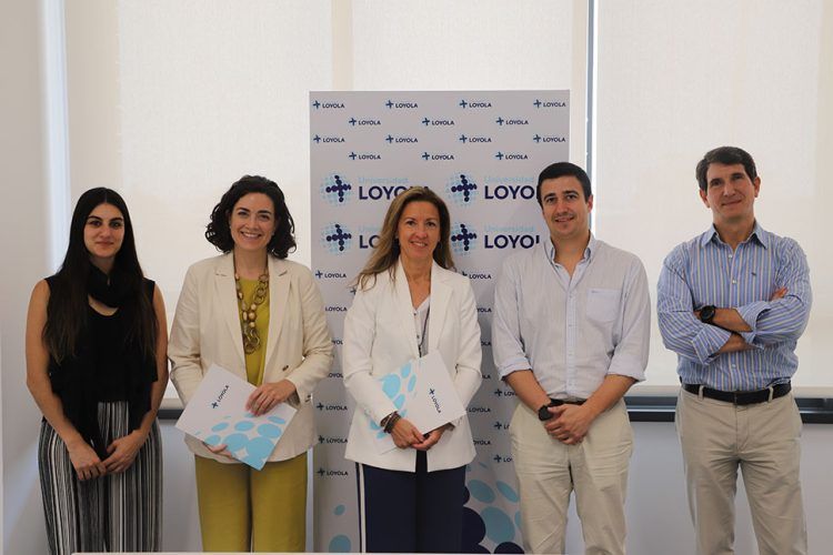 De izquierda a derecha, Esperanza Montero, Hydrogen and Energy Transition Product Manager de Carburos Metálicos; Marta Pérez, Directora de Loyola Másteres; Susana Garcia San-Martin, Segment Marketing Manager Southern Europe de Carburos Metálicos; Francisco Montero, Director del Área de Ingeniería de Loyola Másteres, y Javier Brey, Director del Máster Universitario en Energías y Tecnologías del Hidrógeno de Loyola.