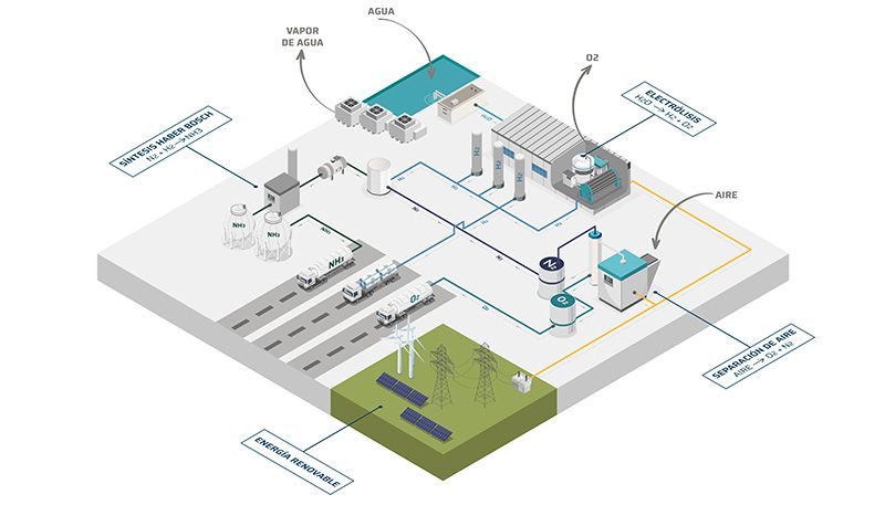 Así, ambas compañías quieren desarrollar una electrolisis integrada, con una capacidad de 25 MW. Generará hidrógeno renovable, con una planta Haber-Bosch avanzada de tamaño pequeño. Es donde tiene lugar el proceso de generación de amoníaco renovable a partir del hidrógeno renovable producido y el nitrógeno del aire.