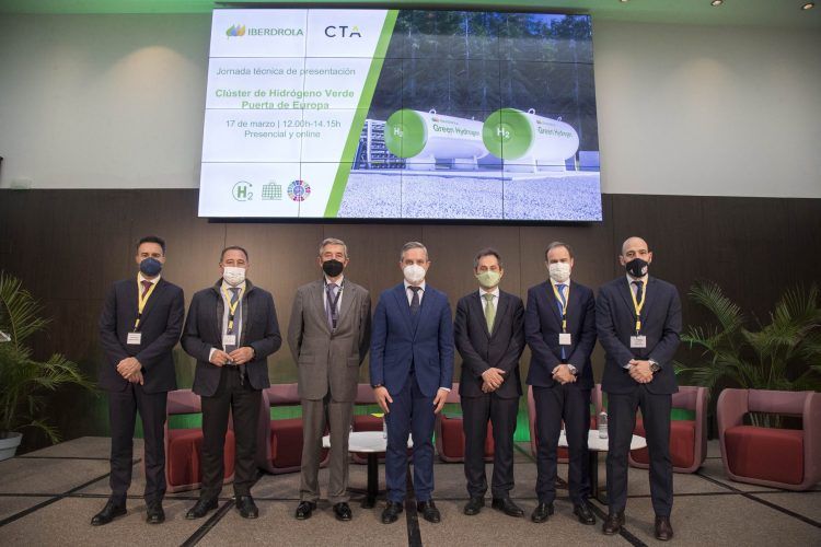 El nuevo clúster Puerta de Europa de hidrógeno verde ha sido presentando hoy en una jornada técnica organizada por CTA e Iberdrola y que ha contado con la inauguración del consejero de Hacienda y Financiación Europea de la Junta de Andalucía, Juan Bravo. El clúster, que tiene una visión estratégica de dimensión andaluza, integrará hasta 600 MW de electrolizadores y cuenta con el apoyo de más de 80 empresas.