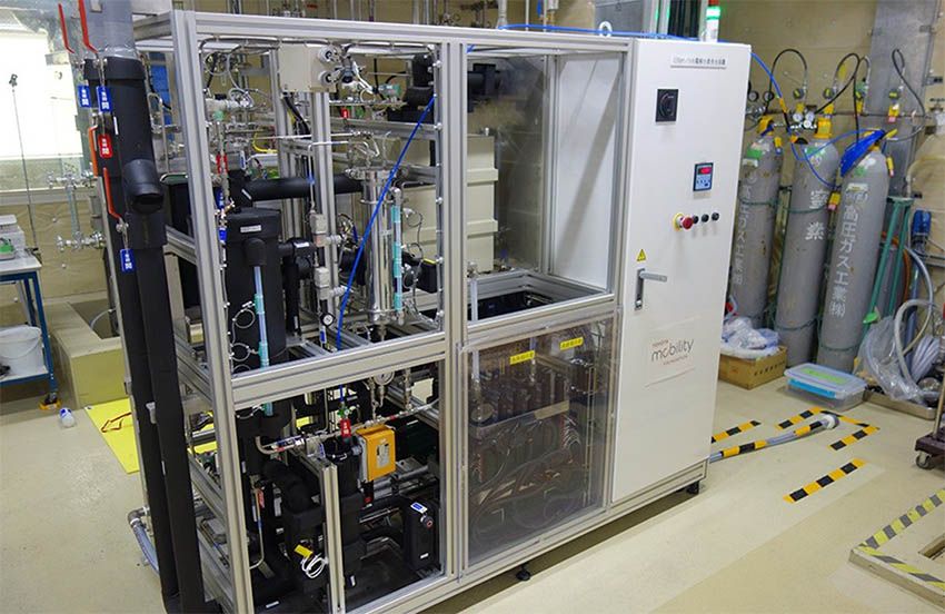 Con base en la información obtenida mediante la realización de revisiones bibliográficas sobre el impacto de las fluctuaciones de energía de las energías renovables en los sistemas de electrólisis de agua, el equipo de investigación comenzó la investigación utilizando un dispositivo práctico de electrólisis de agua instalado con la cooperación del Instituto Nacional de Ciencia y Tecnología Industriales Avanzadas.