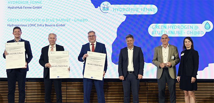 Hydrogenious LOHC Infra Bavaria, una filial de Hydrogenious LOHC Technologies, ha recibido la subvención directamente de manos del ministro federal de Economía de Alemania, Dr. Robert Habeck, y del director del Ministerio de Economía, Desarrollo Regional y Energía de Baviera, Dr. Markus Wittmann.
