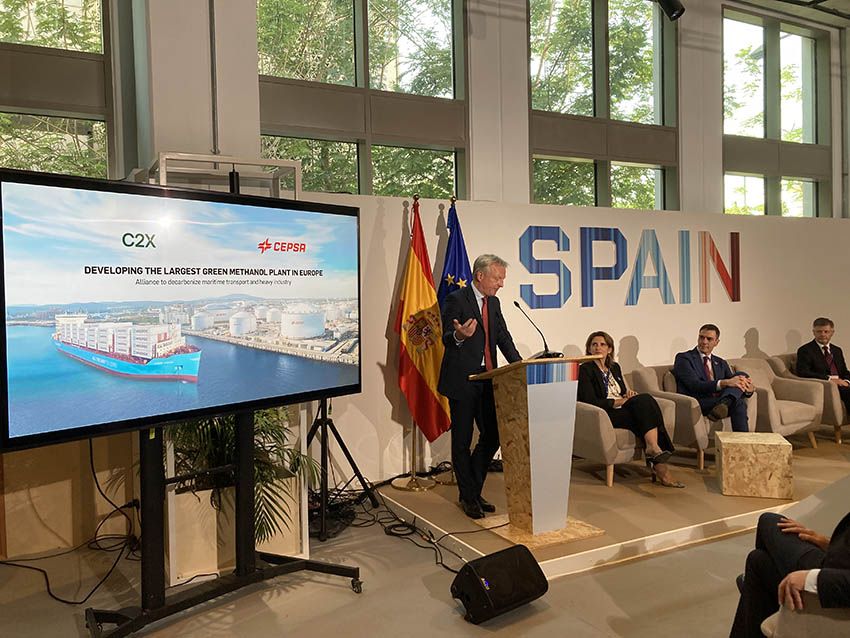 En el ámbito de la COP28, Cepsa y C2X han anunciado el desarrollo de la mayor planta de producción de metanol verde de Europa. El proyecto consiste en desarrollar una planta en Huelva, con una inversión de hasta 1.000 millones de euros. Se convertiría en una de las cinco mayores plantas de metanol verde del mundo. Su producción anual será de 300.000 toneladas. Suministrarán el metanol a múltiples industrias, incluida la química y el transporte marítimo.
