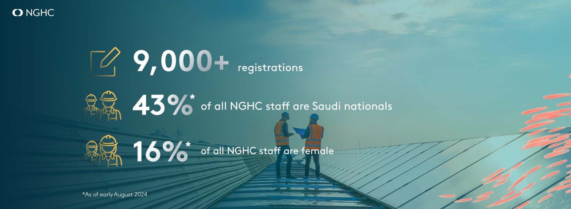A principios de agosto de 2024, el 16% de la fuerza laboral de NGHC está compuesta por mujeres y el 43% por ciudadanos saudíes. La empresa aspira a crear más de 300 puestos de trabajo directos en NEOM cuando esté en pleno funcionamiento a finales de 2026.