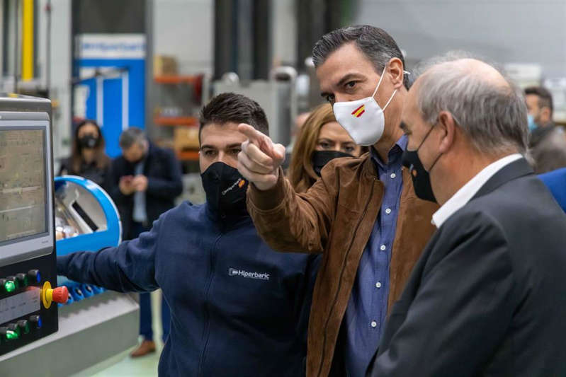 Pedro Sánchez se ha interesado por el procesado por altas presiones para alimentos y bebidas en la que Hiperbaric es referente mundial desde hace más de 20 años, así como en la tecnología de prensado isostático en caliente empleada para componentes industriales críticos enfocados en los sectores aeroespacial, energético, petróleo y gas, automotriz y de implantes médicos.