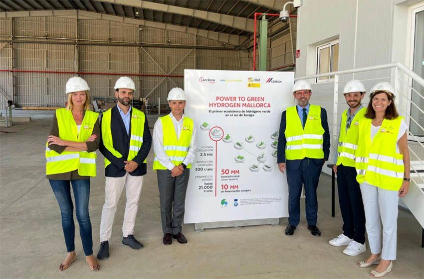 “Ya ha tenido lugar el acto de inauguración de la primera planta de hidrógeno renovable en España, la de Lloseta. Como parte del proyecto Power to Green Hydrogen Mallorca, y parte de la iniciativa europea Green Hysland, la planta ya produce hidrógeno verde. El proyecto, liderado por Enagás y ACCIONA Energía, cuenta con la colaboración del IDAE y CEMEX.”.